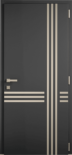 À l’extérieur, trois lignes verticales et trois lignes horizontales en aluminium brossé décoratif créent un motif saisissant qui ne passe pas inaperçu. Chaque ligne incarne la modernité, ajoutant une dimension artistique et dynamique à l’entrée de votre maison.